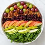 - Combine Fruit and Nuts: Add the toasted pecans and dried cranberries to the bowl with apples and grapes.