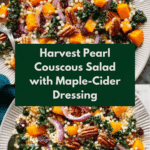 This Autumn Pearl Couscous Salad with Maple-Cider Vinaigrette is a vibrant and hearty dish perfect for crisp fall days. Combining tender roasted butternut squash, hearty kale, and sweet dried cranberries, it’s dressed in a bright, tangy vinaigrette that brings everything together beautifully.