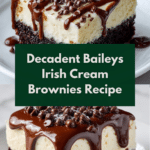These Baileys Irish Cream Brownies combine rich, fudgy chocolate with the smooth, creamy flavor of Baileys Irish Cream. Topped with a luscious Baileys-infused frosting and a drizzle of melted semi-sweet chocolate, these decadent brownies are perfect for dessert lovers looking to impress with an indulgent treat.