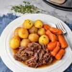 This Best Ever Instant Pot Roast recipe delivers a tender and flavorful beef chuck roast cooked to perfection in an Instant Pot. Infused with fresh thyme, garlic, and a rich beef broth base, this roast is paired with hearty baby potatoes and carrots, making it a comforting one-pot meal perfect for any occasion.