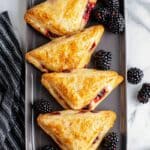 Keywords: blackberry turnovers, puff pastry desserts, berry pastry, easy fruit turnovers, homemade turnovers, blackberry dessert