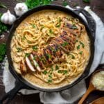 - Step 7: Slice the cooked chicken breasts and serve them on top of the pasta. Garnish with fresh parsley before serving.