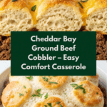 Cheddar Bay Ground Beef Cobbler is a comforting, cheesy casserole combining savory ground beef with a rich biscuit topping inspired by the famous Cheddar Bay Biscuits. This easy-to-make dish offers a hearty meal perfect for family dinners or potlucks.