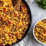 Keywords: cheeseburger pasta, skillet dinner, quick weeknight meal, ground beef pasta, easy cheesy meal, one pan pasta recipe