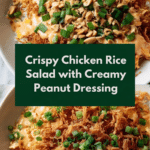 This Chicken Crispy Rice Salad with Peanut Dressing is a delightful fusion of textures and flavors. Crispy pan-fried jasmine rice pairs perfectly with tender chicken and fresh vegetables, all brought together by a creamy, tangy peanut dressing. It’s a satisfying and vibrant dish that’s great for lunch or a light dinner.