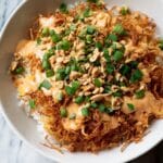 This Chicken Crispy Rice Salad with Peanut Dressing is a delightful fusion of textures and flavors. Crispy pan-fried jasmine rice pairs perfectly with tender chicken and fresh vegetables, all brought together by a creamy, tangy peanut dressing. It’s a satisfying and vibrant dish that’s great for lunch or a light dinner.