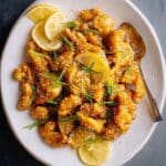 - Garnish and Serve: Transfer the coated chicken to a serving plate. Sprinkle with sesame seeds and sliced spring onions. Garnish with lemon slices if desired. Serve immediately for the best texture and flavor.