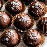 8. Add finishing touch: Sprinkle flaky sea salt on top of each chocolate-coated ball for added flavor and texture.