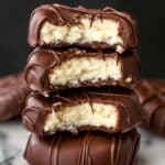 Delicious and naturally sweet chocolate coconut bars made with shredded coconut, coconut oil, and maple syrup, coated in rich melted chocolate. These bars are perfect as a gluten-free and vegan treat that’s easy to prepare and requires no baking.