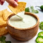 Store the creamy jalapeño sauce in an airtight container in the refrigerator for up to one week. Give it a good stir before serving again. This sauce is best enjoyed chilled, and reheating is not recommended as it may affect the texture and flavor.