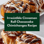Delightful Cinnamon Roll Cheesecake Chimichangas feature a creamy cheesecake filling wrapped in cinnamon roll dough, fried to golden perfection, and dusted with powdered sugar for a warm, indulgent treat.
