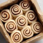 - Shape the Rolls: Carefully roll the dough tightly into a log shape, starting from one long side. Using a sharp knife, slice the log into 10–12 even rolls. Place the rolls into a greased baking dish, leaving slight spaces between each roll.