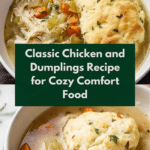 Keywords: Chicken and Dumplings, Classic Chicken Soup, Comfort Food, Homemade Dumplings, Southern Recipe, Easy Chicken Dinner