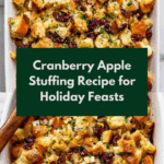 A delicious Cranberry Apple Stuffing featuring artisan sourdough bread, fresh herbs, sautéed celery and onions, sweet Honeycrisp apples, and dried cranberries. This flavorful side dish is moist, tender, and perfect for holiday meals or any comforting autumn feast.