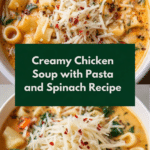 This creamy chicken soup with pasta and spinach is a comforting meal perfect for chilly days. Packed with tender chicken, plenty of vegetables, and cheesy goodness, it’s both hearty and satisfying.