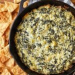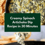 Keywords: spinach artichoke dip, creamy dip, party appetizer, baked dip, cheesy dip, spinach dip recipe, artichoke dip