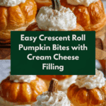 Delightfully festive Crescent Pumpkins with Cream Cheese and Pumpkin Pie Filling are a perfect autumn treat. These adorable bite-sized pastries feature a smooth pumpkin-spiced cream cheese filling wrapped in flaky crescent dough, shaped like miniature pumpkins and brushed with a vibrant orange egg wash for a beautiful golden finish. Ideal for Halloween parties or cozy fall gatherings.