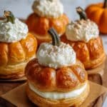 Delightfully festive Crescent Pumpkins with Cream Cheese and Pumpkin Pie Filling are a perfect autumn treat. These adorable bite-sized pastries feature a smooth pumpkin-spiced cream cheese filling wrapped in flaky crescent dough, shaped like miniature pumpkins and brushed with a vibrant orange egg wash for a beautiful golden finish. Ideal for Halloween parties or cozy fall gatherings.