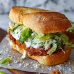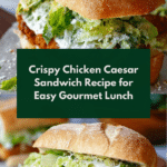 This Crispy Chicken Caesar Sandwich combines tender, breaded fried chicken cutlets with a tangy homemade Caesar dressing and fresh romaine lettuce, all layered inside a crusty French baguette. With a golden, crunchy exterior and a creamy, flavorful dressing, it’s a perfect satisfying meal ideal for lunch or dinner.