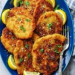 Crispy Chicken Schnitzel with Lemon Wedges Recipe