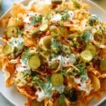 - Serve: Serve the nachos warm with the chilled dill pickle dipping sauce or ranch dressing on the side for dipping.