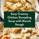 This comforting Dumpling Soup uses refrigerated biscuit dough for quick and easy dumplings that float atop a creamy, savory broth. Filled with tender chicken, fresh vegetables, and aromatic herbs, it’s a perfect warm meal year-round.