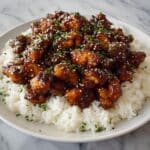 This Easy Bourbon Chicken recipe features tender, boneless chicken breasts coated in a flavorful cornstarch crust, browned to perfection, and simmered in a rich, sweet, and tangy bourbon sauce. With a delicious blend of garlic, soy sauce, apple juice, brown sugar, and a hint of bourbon, this one-pan dish is quick to prepare and perfect served over steamed rice for a satisfying meal with a classic American-Asian twist.