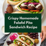This Falafel Pita Sandwich recipe features crispy homemade falafels made from soaked chickpeas blended with fresh herbs and spices, then pan-fried to golden perfection. Served inside soft pita bread with creamy hummus, fresh tomatoes, cucumber, and olives, this sandwich is a delicious, wholesome Middle Eastern-inspired meal perfect for lunch or dinner.