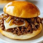 French Onion Beef Sloppy Joes combine the rich, caramelized flavor of French onions with savory ground beef served on toasted chicken buns and topped with melted Swiss cheese. This hearty twist on a classic sloppy joe offers a deliciously comforting meal perfect for lunch or dinner.