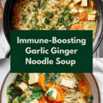 This Garlic Ginger Soup with Noodles is a vibrant, flavorful vegan soup packed with fresh ginger, garlic, and nutritious vegetables. Enriched with tofu for protein and rice noodles for heartiness, it delivers a comforting bowl perfect for any season. The combination of aromatic spices and tangy lemon juice creates an invigorating broth that warms you from the inside out.