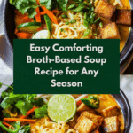 This comforting broth-based soup recipe is a flavorful and versatile base made with aromatic spices, fresh ginger, garlic, and onions sautéed in olive oil or ghee. Enhanced with turmeric, cumin, coriander, and a touch of heat from cayenne, the broth combines vegetable or chicken stock with water and a splash of citrus or vinegar for brightness. It serves as a nourishing foundation perfect for adding your preferred vegetables, proteins, pasta, or beans to create a customized, soothing soup.
