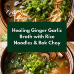 This Healing Ginger Garlic Broth with Rice Noodles and Bok Choy is a soothing, flavorful soup perfect for chilly days or when you need a comforting meal. Packed with aromatic ginger and garlic, fresh vegetables, and tender rice noodles, it’s both nourishing and easy to prepare.