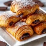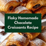 Homemade Chocolate Croissants are flaky, buttery pastries filled with rich semi-sweet chocolate. This recipe uses a classic laminated dough technique, incorporating chilled butter layers and multiple folds to create light, airy croissants with a crisp, golden crust. Perfect for breakfast or an indulgent snack, these croissants are baked fresh at home with simple ingredients and detailed instructions.