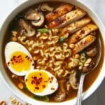 This homemade ramen is a flavorful, comforting bowl perfect for any day of the week. Packed with tender chicken, sautéed mushrooms, and fresh bok choy in a rich broth, it’s elevated by a balance of savory and spicy notes. Ready in less than an hour, it’s a satisfying meal that rivals your favorite ramen shop.