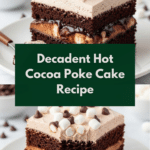 Delight in this comforting Hot Cocoa Poke Cake that combines rich chocolate cake with gooey marshmallow creme, luscious chocolate fudge, and a creamy hot chocolate-flavored whipped topping. Topped with mini marshmallows and chocolate chips, this cake is perfect for cozy gatherings or a festive dessert treat.
