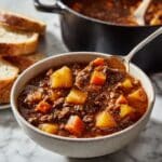 Hungarian Goulash is a hearty and comforting stew featuring tender beef chuck, fragrant paprika, and a medley of potatoes and carrots. This traditional dish simmers slowly on the stovetop, allowing the rich flavors of spices and vegetables to meld into a warming and satisfying meal perfect for any occasion.