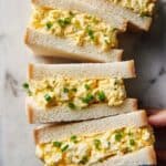 - Garnish and serve: Optionally sprinkle sliced chives on top of the egg salad before closing the sandwich or as a garnish on the plate. Cut each sandwich in half and serve immediately for best texture and flavor.