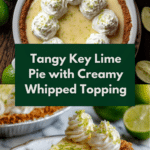A classic Key Lime Pie featuring a buttery graham cracker crust filled with a tangy, creamy lime custard and topped with fluffy whipped cream. This refreshing dessert is baked to perfection and chilled for the best flavor and texture, perfect for summer or any citrus lover’s treat.