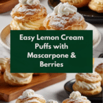 These lemon cream puffs are a delightful treat combining flaky puff pastry with a luscious mascarpone frosting and tangy lemon curd. Finished with fresh berries and a dusting of powdered sugar, they make a perfect dessert for any occasion.