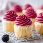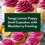 Delightfully moist Lemon Poppy Seed Cupcakes topped with a luscious blackberry frosting. These cupcakes combine zesty lemon flavor and crunchy poppy seeds with a creamy, naturally fruity frosting, perfect for spring or summer gatherings.