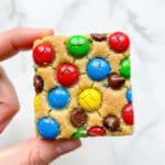 Keywords: M&M Cookie Bars, Cookie Bars, M&M Dessert, Chocolate Chip Bars, Easy Cookie Bars, Baked Cookie Bars