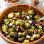 Maple-Balsamic Roasted Brussels Sprouts with Cranberries, Goat Cheese, and Pecans Recipe