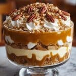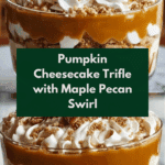 This Maple Pecan & Pumpkin Cheesecake Trifle is a delightful autumn dessert that combines the warm flavors of pumpkin spice cake with creamy maple pecan cheesecake filling. Layered with whipped cream and topped with candied pecans, it’s perfect for sharing at holiday gatherings or cozy nights in.
