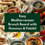 Keywords: Mediterranean brunch board, hummus, pita bread, falafel, feta cheese, olives, cherry tomatoes, cucumber, vegetarian brunch, easy brunch recipes