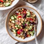 Keywords: Mediterranean farro salad, farro salad, healthy salad, vegan salad, chickpea salad, Mediterranean cuisine, vegetable salad, farro recipe
