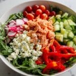 This Mediterranean Salmon Salad is a fresh and vibrant dish perfect for a healthy lunch or light dinner. Combining tender salmon with crisp vegetables and tangy feta, it’s packed with flavor and nutrients. Ready in just minutes, it’s an easy way to enjoy a wholesome meal.