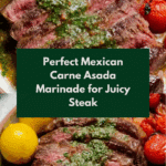 This Mexican Carne Asada Marinade recipe features a flavorful and tender skirt steak marinated in a vibrant blend of citrus juices, soy sauce, fresh herbs, and spices. Perfectly grilled to achieve a delicious charred exterior and juicy interior, this dish is ideal for tacos, burrito bowls, quesadillas, or served alongside fresh sides. The marinade’s mix of acidity and seasoning tenderizes the meat while imparting a bold, aromatic taste typical of authentic carne asada.