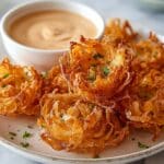 Mini Blooming Onions are a delightful and guilt-free snack made by coating sweet onions in a flavorful seasoned flour, air frying them to crispy perfection, and serving with a tangy dipping sauce. This recipe uses an air fryer for a healthier alternative to traditional deep-fried blooming onions, making it perfect for a crunchy, savory treat without the extra oil.