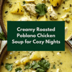 This mouthwatering Roasted Poblano Soup delivers ultimate comfort with a smoky and mildly spicy flavor profile. Featuring roasted poblano peppers, tender chicken, and creamy potatoes, this hearty soup blends a savory base with fresh herbs and a touch of creaminess. Perfect for chilly days or anytime you crave a cozy, flavorful bowl of soup.