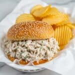 Ohio Shredded Chicken Sandwiches are a comforting and simple dish perfect for busy weeknights. Tender chicken cooked slowly with creamy soup and flavorful stuffing creates a hearty, crowd-pleasing meal. Serve on buns for an easy and delicious sandwich.